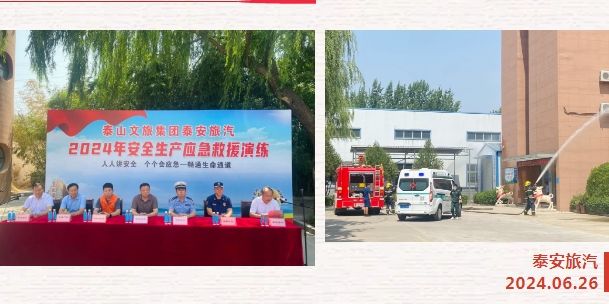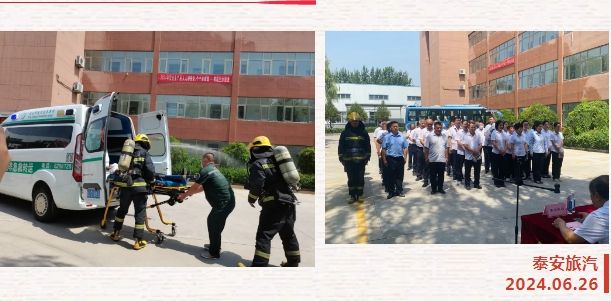 為全面強化公司安全管理,切實提高全體職工的安全意識和安全素養(yǎng),貫徹落實行業(yè)主管部門關(guān)于安全生產(chǎn)工作重要指示精神和安全生產(chǎn)月活動統(tǒng)一部署,6月26日上午,泰山文旅集團泰安旅汽結(jié)合實際,緊緊圍繞2024年第23個安全月“人人講安全 個個會應(yīng)急——暢通生命通道”的活動主題,組織進行了辦公樓火災(zāi)逃生綜合應(yīng)急預(yù)案演練和車輛起火現(xiàn)場處置預(yù)案演練。本次活動邀請到市交通運輸局、交警支隊、消防大隊、中心血站、文旅產(chǎn)投集團相關(guān)單位領(lǐng)導(dǎo)蒞臨現(xiàn)場觀摩指導(dǎo)。